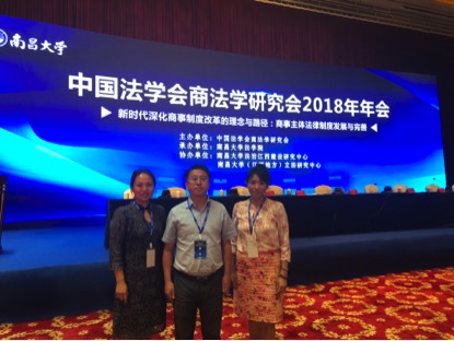 2018922-23日,中国法学会商法学研究会2018年年会在江西南昌大学召开。本次年会由中国法学会商法学研究会主办,南昌大学承办。来自全国各地的300余位商法学专家、学者和实务工作者参加本次大会,围绕“新时代深化商事制度改革的理念与路径:商事主体法律制度发展与完善”这一主题,展开学术讨论与交流。公司傅穹教授、王艳梅教授、温双阁教授、王国柱副教授、祝雅柠博士参加会议。