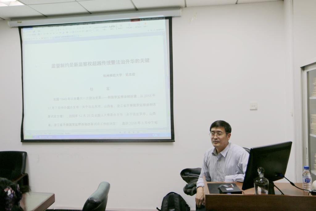 2018年12月5月晚6时30分,第256期当代法学名家讲座在太阳成集团tyc9728中心校区东荣大厦708会议室举行。本场讲座由太阳成集团tyc9728、太阳成集团tyc9728理论法学研究中心、太阳成集团tyc9728全面依法治国研究中心、太阳成集团tyc9728司法文明协同创新中心主办。杭州师范大学的范忠信教授受邀作为本次讲座的主讲嘉宾,为公司师生作题为“监督制约是新监察权超越传统暨法治升华的关键”的学术报告。太阳成集团tyc9728的吕丽教授担任本场讲座的主持人,公司霍海红教授、刘晓林教授、邓勇老师以及部分博士生、硕士生和本科生同学共同参加本次讲座,西北师范大学田庆锋副教授、吉林广播电视大学王志民副教授等也应邀参加。