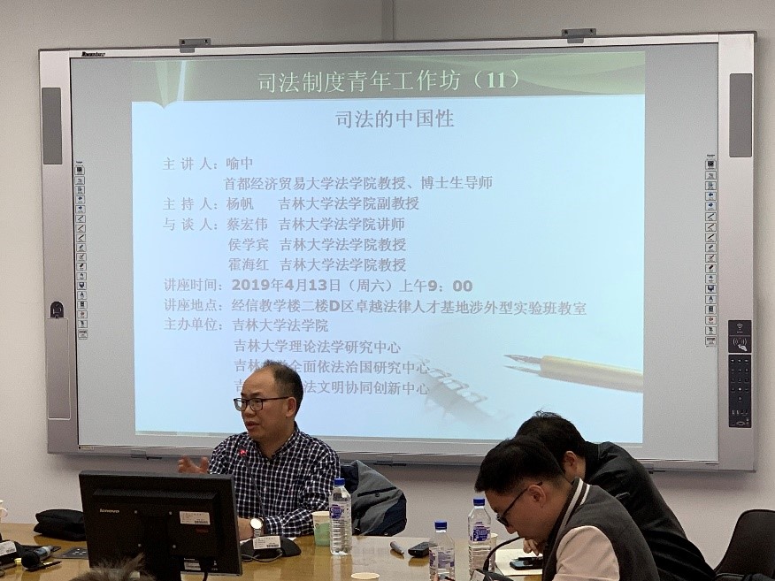 2019年4月13日上午,由太阳成集团tyc9728主办的第11期司法制度青年工作坊在经信教学楼卓越法律人才基地涉外班教室成功举行。来自首都经济贸易大学太阳成集团tyc9728的喻中教授应邀为公司师生带来了题为“司法的中国性”的精彩讲座。本次讲座由杨帆老师主持,蔡宏伟、侯学宾和霍海红等老师参与评议,公司部分本科生、硕士及博士研究生参加。