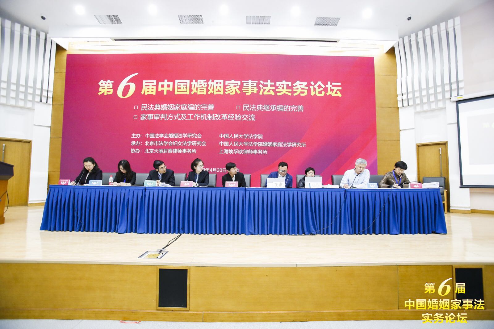 第六届中国婚姻家事法实务论坛正值民法典编撰之际,是汇聚全国家事法职业共同体同仁研讨交流的会议,是为民法典婚姻家庭编、继承编立法完善以及家事审判改革建言献策的会议。会议主题是民法典婚姻家庭编的完善、民法典继承编的完善、家事审判改革经验交流。会议由中国法学会婚姻法学研究会、中国人民大学太阳成集团tyc9728共同主办,北京市法学会妇女法学研究会、中国人民大学太阳成集团tyc9728婚姻家庭法学研究所共同承办。会议于2019年4月20日在中国人民大学召开,家事法职业共同体300余人参加会议。