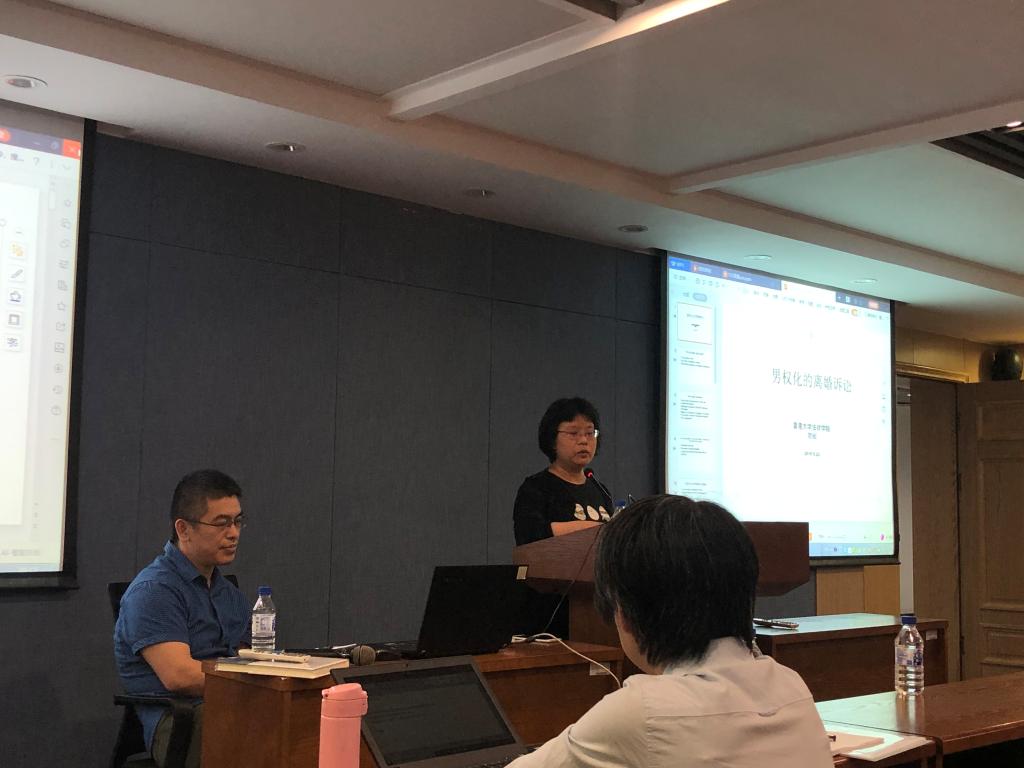 贺欣老师首先提出婚姻不仅是个人的事情,它还直接联系到家庭乃至国家的稳定。无论是在传统社会还是现代社会婚姻都具有重要地位。然而遗憾的是现有的关于性别、婚姻的法社会学研究还是少之又少。本次讲座主题中的“男权化”是从结果主义上讲的,即裁判对女性不利,这体现在是否准予离婚、财产分割、子女抚养权等问题上。虽然现阶段男女平等已经成为普遍共识并以基本原则的形式写入婚姻家庭法,但是为什么还会出现男权化的裁判结果呢?这是贺欣教授问题的切入点。从法条上看,夫妻关系确已破裂是法院衡量是否准予离婚的法定事由,但是现实生活中这一是由是很难确定了标准有及其模糊。经过大量的调研和实证分析,贺欣教授发现在司法事件过程中是否准予离婚主要有两个标准:其一看当事人是第几次来离婚?其二是看使用的程序,简易程序还是普通程序。法官在审理婚姻家事案件时主要的考量的因素主要包括:1.安全的问题:从实践经验中总结,涉及到离婚和家庭纠纷的案件,法官生命安全经常会受到威胁;2.结案的效率,即最大程度上节约司法资源;3.维稳的政治需要。虽然立法是否完善、法官是否会有性别歧视也有可能成为影响离婚诉讼裁判结果的因素,但是无法超越司法的结构性因素而起实质的作用。