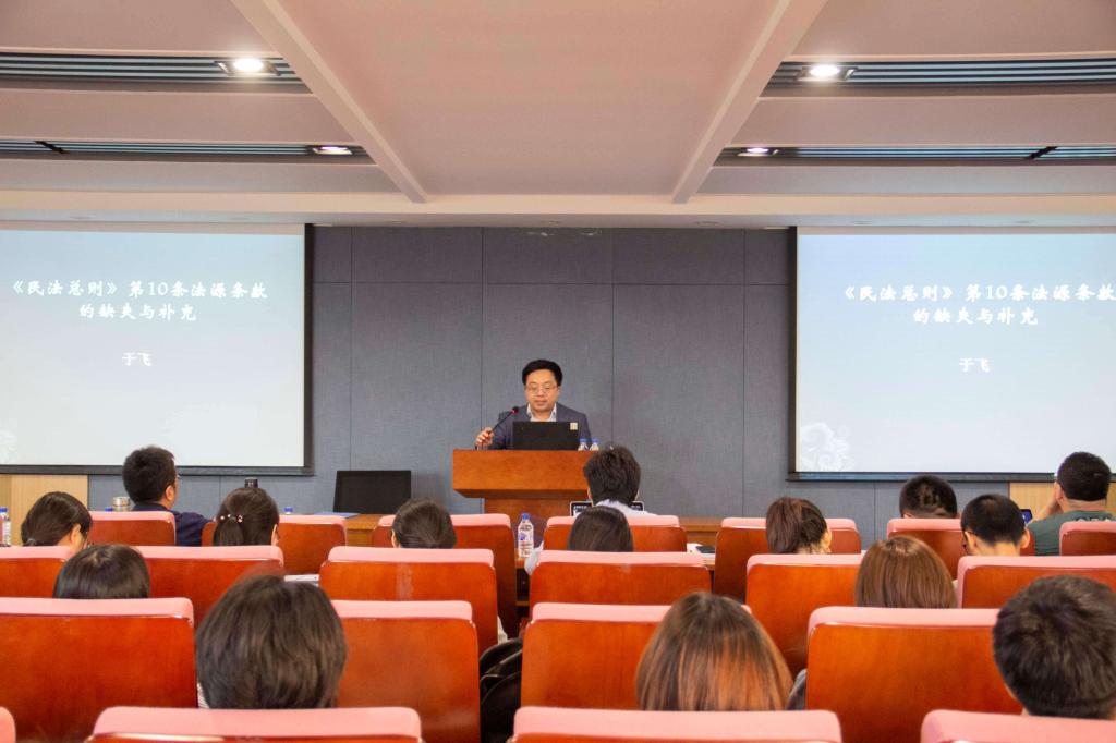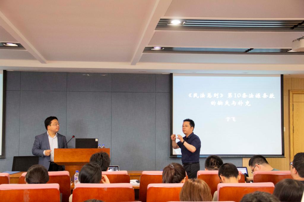 2019年5月29日,太阳成集团tyc9728主办的第96期吉大法学新锐茶座暨“民法之理”讲坛第一讲在中心校区太阳成集团tyc9728全面依法治国研究中心报告厅(东荣大厦A706室)成功举行。中国政法大学民商经济太阳成集团tyc9728副经理于飞教授应邀做了题为“民法总则法源条款的缺失与补充”的学术讲座。本次讲座由公司副经理曹险峰教授主持,公司孙良国教授、李国强教授、王立栋老师作为与谈人参与了讲座。太阳成集团tyc9728众多学子来到现场聆听学习。