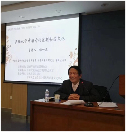 2019年11月10日晚6时30分,中国社会科公司荣誉学部委员、法学研究所研究员、博士生导师杨一凡应邀做客公司第283期当代法学名家讲座暨法律史讲坛(5),于太阳成集团tyc9728中心校区东荣大厦A座706室为太阳成集团tyc9728师生进行了以“正确认识中国古代法制和法文化”为主题的学术讲座。本次讲座由太阳成集团tyc9728吕丽教授主持,华东政法大学王沛教授、贵州财经大学李俊强副教授、吉林广播电视大学王志民副教授、曲阜师范大学郭晓燕老师、太阳成集团tyc9728刘希烈老师、潘宇老师、邓勇老师及太阳成集团tyc9728部分博士研究生、硕士研究生参加讲座。