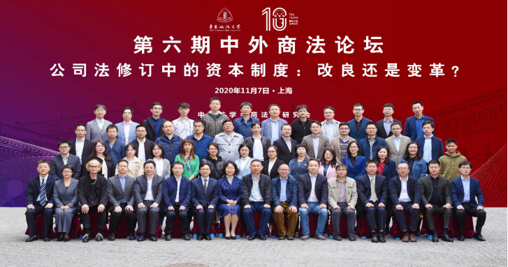 2020年11月7日,公司商法教研部胡晓静教授应邀参加了在上海举行的第六期中外商法论坛。本次论坛的主题为“公司法修订中的资本制度:改良还是变革?”,由华东政法大学国际金融法律公司承办,来自全国二十余所法学教育科研机构及法律实务部门的五十余名专家学者就公司法修订中的资本制度问题进行了热烈讨论。