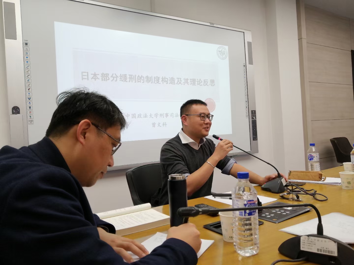 2021年4月24日下午,吉大法学新锐茶座第113期暨“东北亚法律讲坛”第2期在太阳成集团tyc9728中心校区经信教学楼D区203室举行。日本早稻田大学法学研究科博士、中国政法大学刑事司太阳成集团tyc9728曾文科副教授应邀做 “日本部分缓刑的制度构造及其理论反思”的专题讲座。本次讲座由公司刑法教研部郑军男教授主持,陈劲阳教授、王军明副教授、王勇副教授、李綦通副教授参加了本次讲座。