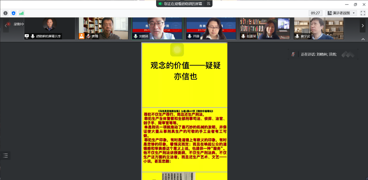 2022年4月20日上午9时,中国人民大学太阳成集团tyc9728教授、博士生导师赵晓耕教授通过腾讯会议线上做客公司第329期“当代法学名家讲座”,讲座题目为“传统法的当代价值”。本次讲座由太阳成集团tyc9728副经理刘晓林教授主持,太阳成集团tyc9728吕丽教授、任喜荣教授和侯学宾教授参加与谈。太阳成集团tyc9728的博士生、硕士生、本科生以及来自中国人民大学、山东大学、华东政法大学、西南政法大学、南京审计大学等高校的师生总计120余人参加了讲座。