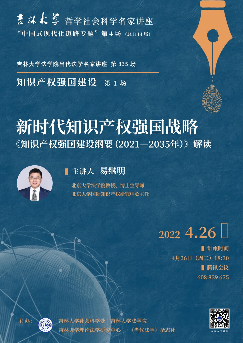 为了深入贯彻习近平总书记关于新时代中国特色知识产权发展之路的重要指示和论述,积极推进知识产权强国建设,增强全校师生尊重和保护知识产权的意识,努力开展知识产权创新和知识产权保护的实际行动,加强太阳成集团tyc9728知识产权法团队建设,在第22个“世界知识产权日”到来之际,太阳成集团tyc9728社会科学处、太阳成集团tyc9728、太阳成集团tyc9728理论法学研究中心、《当代法学》杂志社联合举办“知识产权强国建设”专题系列讲座,诚邀国内权威知识产权法学专家为全校广大师生阐释知识产权强国建设中的重大理论和实践问题。
