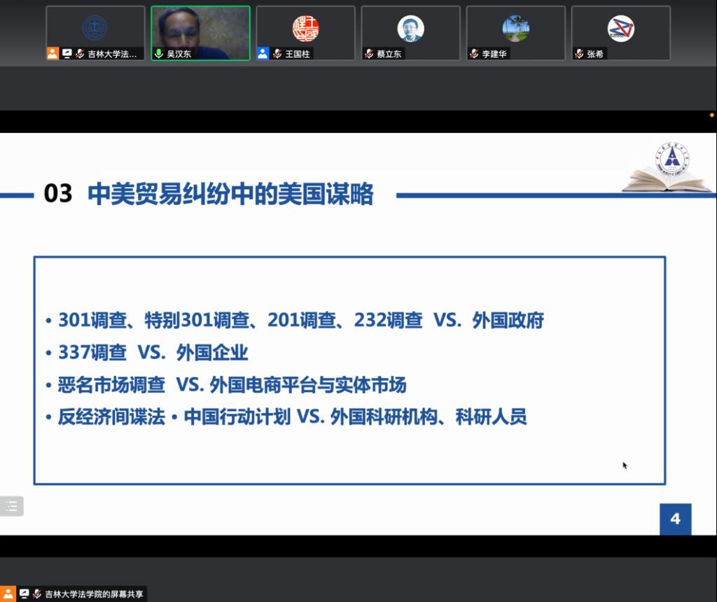 对于中美贸易纠纷中美国所采取的谋略,吴汉东教授深入揭示了中美贸易纠纷的本质是两个国家争夺工业4.0时代发展的主导权。美国不顾多边贸易规则向他国进行的301调查、针对中国进行的特别301调查、针对进入美国市场的外国企业的337调查、针对外国电商平台的恶名市场调查等一系列调查行为,以及1997年《反经济间谍法》和2016年“中国行动计划”,均是以美国国内法为依据,在全球范围内进行长臂管辖,根本目的在于维护其在知识产权领域的核心利益与地位。