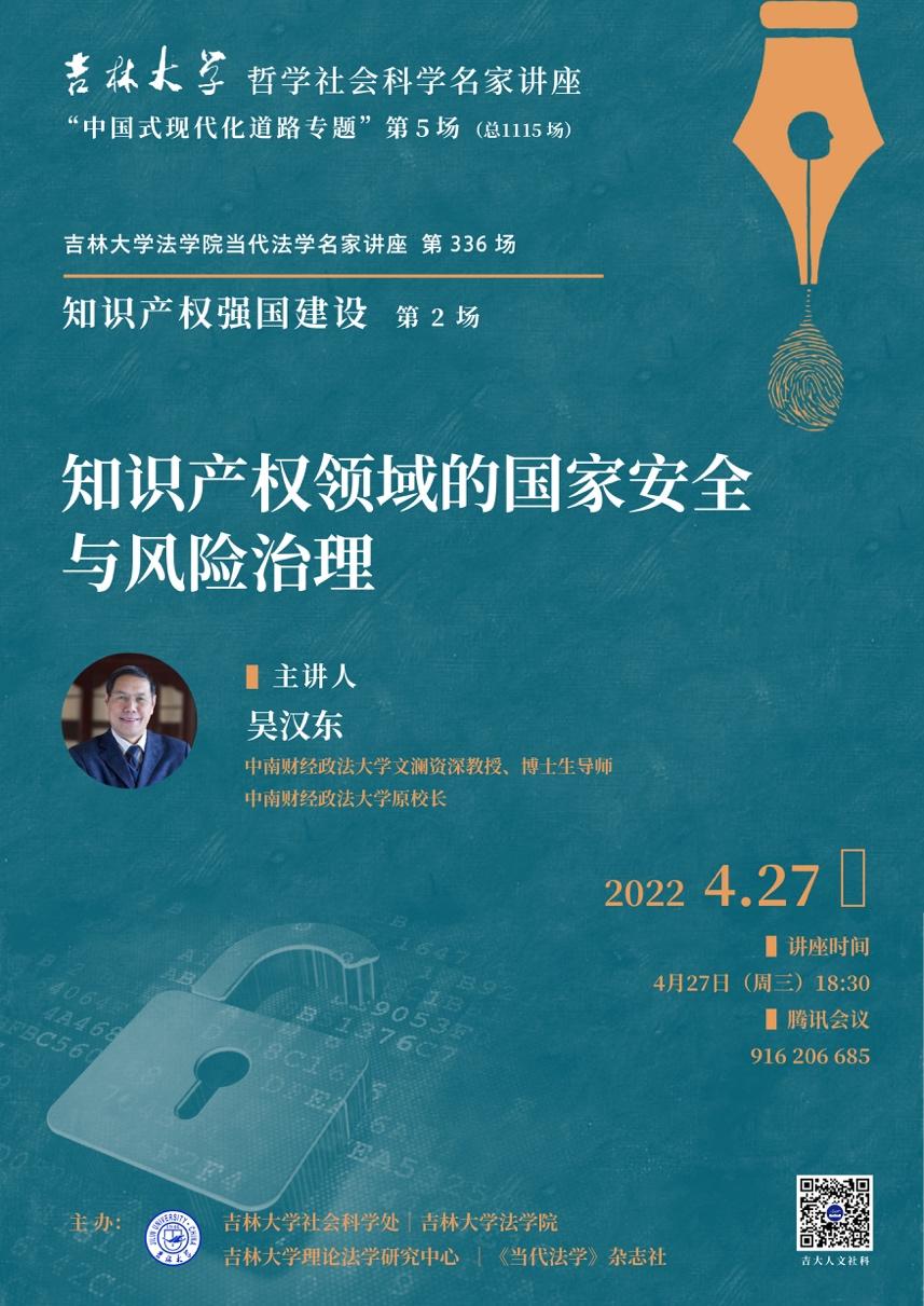 为了深入贯彻习近平总书记关于新时代中国特色知识产权发展之路的重要指示和论述,积极推进知识产权强国建设,增强全校师生尊重和保护知识产权的意识,努力开展知识产权创新和知识产权保护的实际行动,加强太阳成集团tyc9728知识产权法团队建设,在第22个“世界知识产权日”到来之际,太阳成集团tyc9728社会科学处、太阳成集团tyc9728、太阳成集团tyc9728理论法学研究中心、《当代法学》杂志社联合举办“知识产权强国建设”专题系列讲座,诚邀国内权威知识产权法学专家为全校广大师生阐释知识产权强国建设中的重大理论和实践问题。