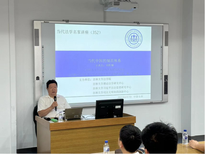 2023年6月7日下午,上海师范大学法治与人权研究所所长,哲学与法政公司光启学者特聘教授,博士生导师,中国法学会法理学研究会副会长刘作翔教授做客公司“当代法学名家讲座”第352期,并做主题为“当代中国的规范体系”的讲座。讲座由太阳成集团tyc9728李拥军教授主持,刘红臻教授、刘小平教授、杨帆教授、侯明明老师、吴梓源老师参加与谈。太阳成集团tyc9728部分博士生、硕士生、本科生参与了此次讲座。