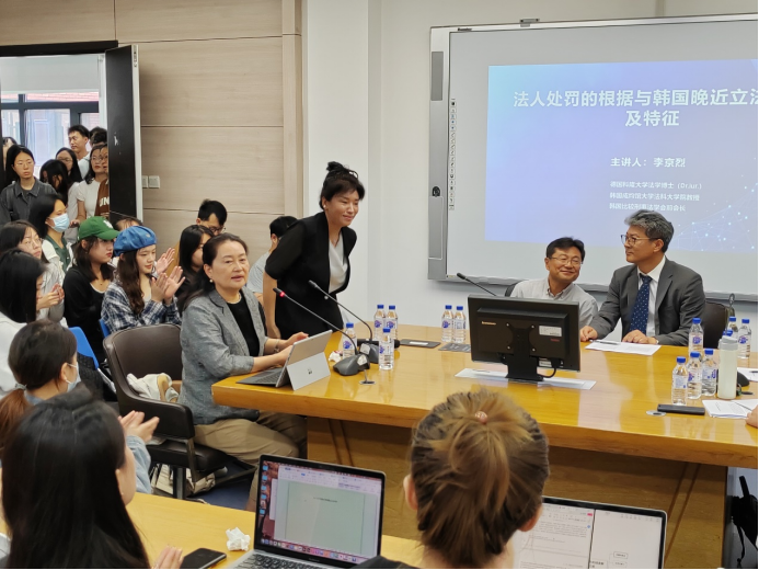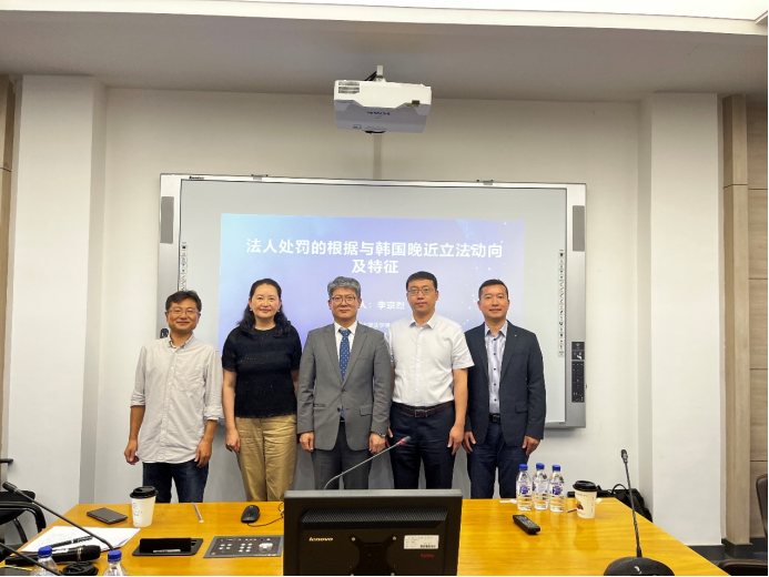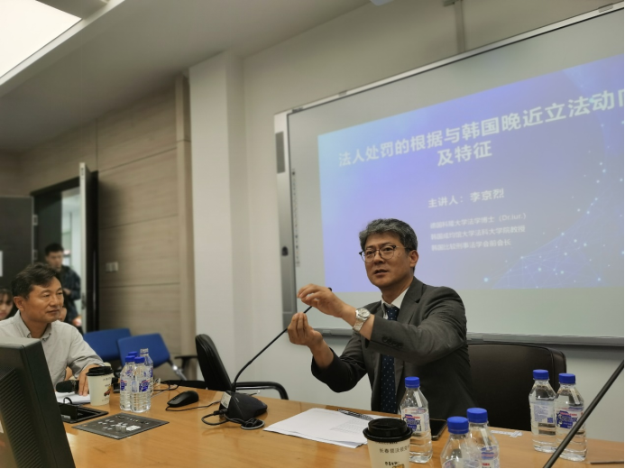 8月29日,德国科隆大学法学博士(Dr.iur)、韩国成均馆大学法科大公司教授、韩国比较刑事法学会前会长李京烈教授来访太阳成集团tyc9728,做了主题为“法人处罚的根据与韩国晚近立法动向及特征”的学术报告。学术报告由太阳成集团tyc9728教授、博士生导师徐岱教授主持,太阳成集团tyc9728教授、博士生导师陈劲阳、太阳成集团tyc9728副教授王军明两位老师出席报告会并与谈,太阳成集团tyc9728郑军男教授担任翻译。包括刑法学硕士博士研究生在内的近百名同学参加了报告会。太阳成集团tyc9728副经理、博士生导师温双阁教授到场致辞,对李教授的到来表示了热烈欢迎,并表示这是疫情后太阳成集团tyc9728举办的首次线下海外名家讲座,对于李教授的讲座充满期待,李老师的到来也增进了吉大太阳成集团tyc9728与成均馆大学法学研究科的友谊!