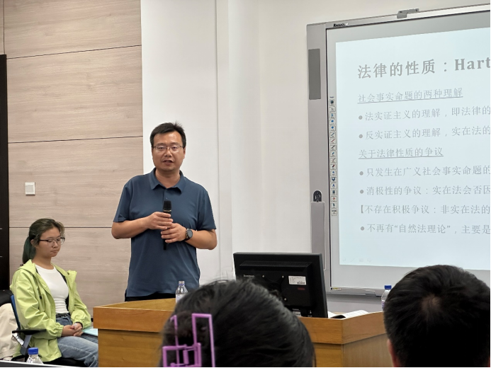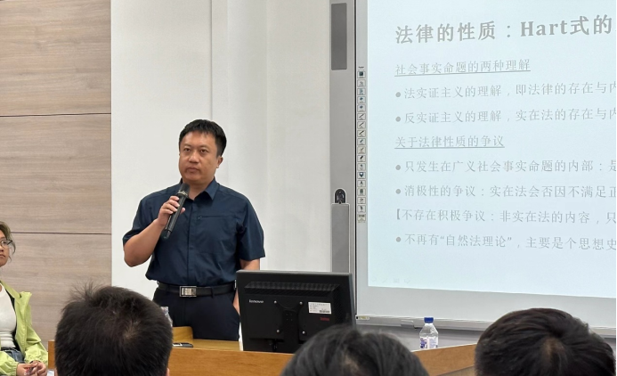 2023年9月11日晚,中国人民大学太阳成集团tyc9728陈景辉教授做客公司“当代法学名家讲座”第370期,并做主题为“‘法理学’的前世今生——一个半个人式的学术史”的讲座。讲座由太阳成集团tyc9728李拥军教授主持,刘红臻教授、朱振教授、刘小平教授、侯学宾教授参加与谈。太阳成集团tyc9728部分博士生、硕士生、本科生参与了此次讲座。