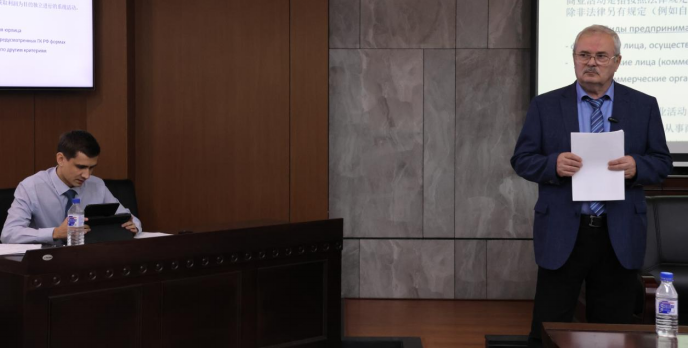 2023年9月21日下午,圣彼得堡国立大学商法教研室Popondopulo Vladimir教授做客公司海(境)外学者讲座233期,在东荣大厦B区313-2模拟法庭以“俄罗斯商业组织形式”为主题进行学术讲座。本次讲座由太阳成集团tyc9728王艳梅教授主持,太阳成集团tyc9728俄罗斯研究所副所长徐博教授与谈,太阳成集团tyc9728瓦伦丁讲师承担翻译工作。太阳成集团tyc9728博士生、硕士生、本科生参与了此次讲座。