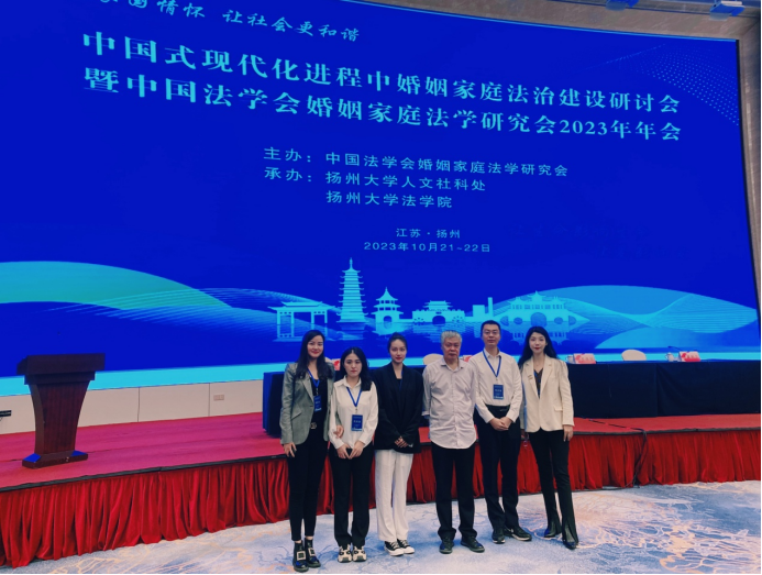 2023年10月21-22日,中国式现代化进程中婚姻家庭法治建设研讨会暨中国法学会婚姻家庭法学研究会2023年年会在江苏扬州召开。本次会议由中国法学会婚姻家庭法学研究会主办、扬州大学人文社科处、扬州大学太阳成集团tyc9728承办,来自高校、研究院所、人大、法院、检察院、律师等系统和单位的100余位理论及实务工作者参加了会议。公司李洪祥教授、刘国栋副教授,以及博士研究生陈凤、马佳悦等参加了会议。