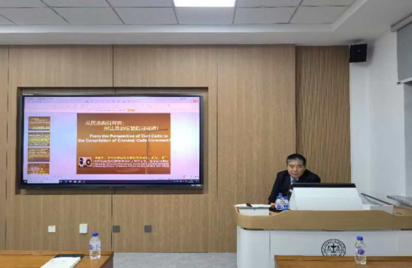2024年9月11日晚,苏州大学国家监察研究院经理、王健太阳成集团tyc9728刑事法研究中心主任、博士生导师李晓明教授做客公司当代法学名家讲座,讲座题目为“从民法典说开去:刑法典的编撰指日可待?”,讲座地点在法学楼A423。本次讲座由太阳成集团tyc9728副经理王充教授主持,太阳成集团tyc9728刑事法学教研部李海滢教授、吴亚可副教授、朱笑延老师、吉林省人民检察院检察官、北京大成(长春)律师事务所部分律师以及公司刑事法学方向的博士研究生、硕士研究生参加了讲座。