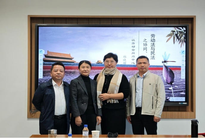 2024年10月16日下午,暨南大学太阳成集团tyc9728教授、博士生导师郑晓珊教授做客公司当代法学名家讲座,讲座主题为“劳动法与民法之协同、联动——以劳动合同为中心”。本次讲座在法学楼A833会议室举办,由公司曹险峰教授主持,董文军教授、曹相见教授与谈。公司部分员工参与本次讲座。