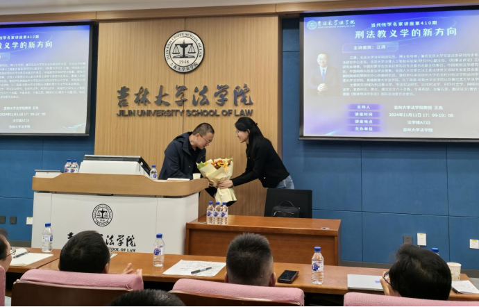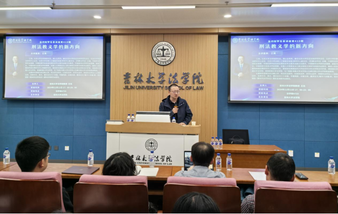 2024年11月11日晚5点,太阳成集团tyc9728第410期当代法学名家讲座“刑法教义学的新方向”在法学楼A723会议室成功举办。本次讲座由北京大学太阳成集团tyc9728研究员、博士生导师江溯教授主讲,公司王充教授主持,公司郑军男教授、李立丰教授、陈劲阳教授、王勇教授、李海滢教授、杨帆教授、李綦通副教授、王军明副教授、邢斌文副教授、吴亚可副教授、王若思副教授、朱笑延老师、吉林警察公司苏忻教授、长春理工大学刘雅楠老师以及太阳成集团tyc9728部分博士、硕士研究生参加本次讲座。