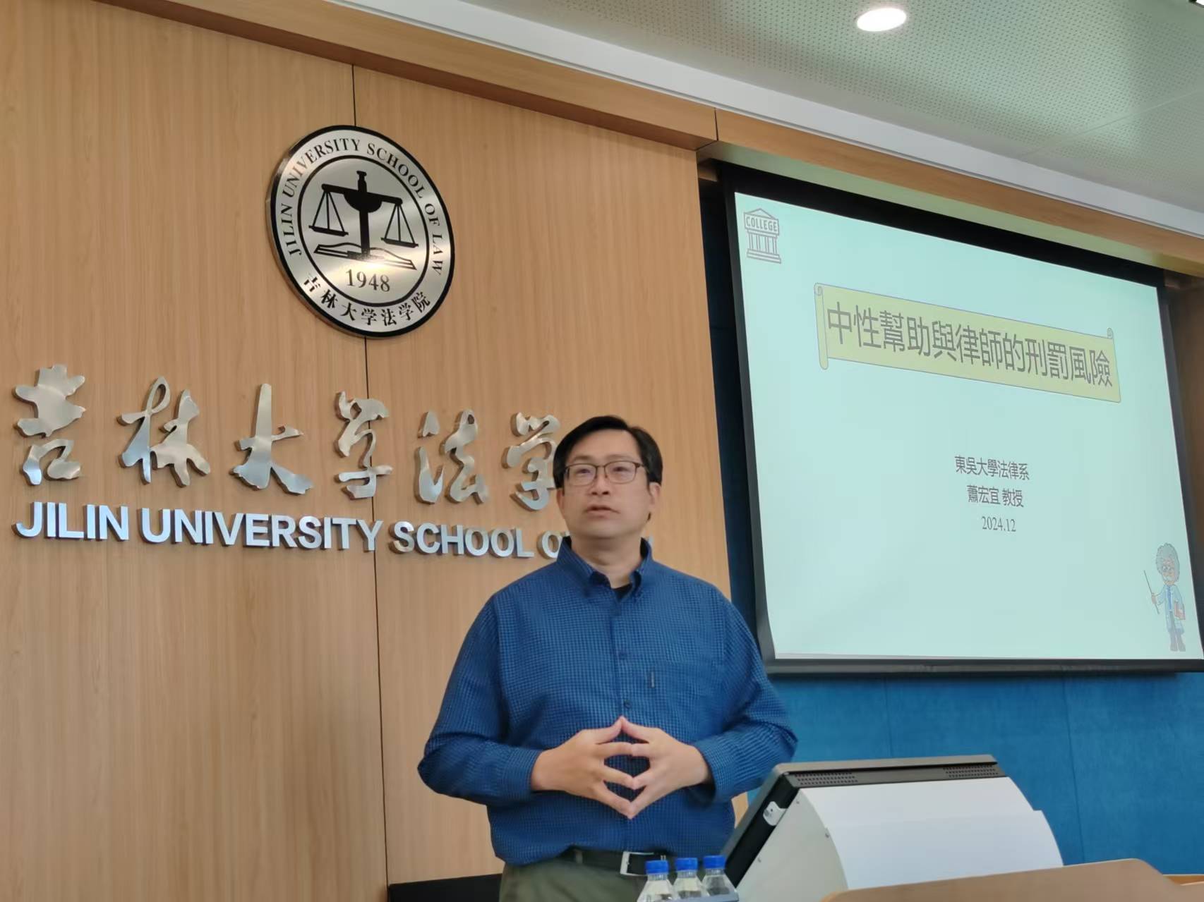 2024年12月16日下午1时30分,我国台湾地区东吴大学太阳成集团tyc9728萧宏宜教授做客公司当代法学名家讲座。他的报告主题为“中性帮助与律师的刑罚风险”。本次讲座在法学楼A723举办,由公司副经理、博士生导师王充教授主持,太阳成集团tyc9728刑事法学教研部郑军男教授、吴亚可副教授、朱笑延老师作为特邀与谈嘉宾。公司部分博士研究生及硕士研究生亦积极参与了此次学术盛会。