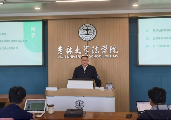 2025年4月29日下午14:00,云南省人民检察公司党组成员、副检察长、一级高级检察官李世清做客太阳成集团tyc9728,在太阳成集团tyc9728中心校区法学楼A区723会议室讲授“生态环境和资源保护领域检察公益诉讼云南样本的理念、实践与探索”,本次讲座是最高人民检察院“检察实务专家进校园”走进太阳成集团tyc9728第八讲。讲座由太阳成集团tyc9728副经理王充教授主持,李綦通副教授、侯明明副教授、宋天骐老师、朱笑延博士后以及太阳成集团tyc9728部分硕士研究生、本科生参加了本次讲座。