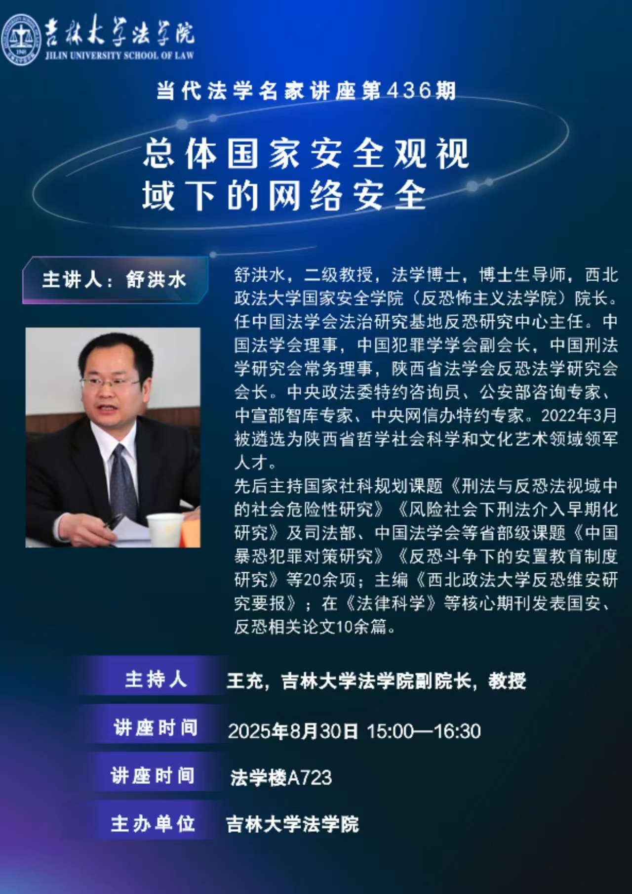 上一篇:西北政法大学舒洪水教授做客太阳成集团tyc9728“当代法学名家讲座” 下一篇:吉大法学学术茶座第152期:联合国打击网络犯罪公约背景下功能等效原则的理论重述与中国运用