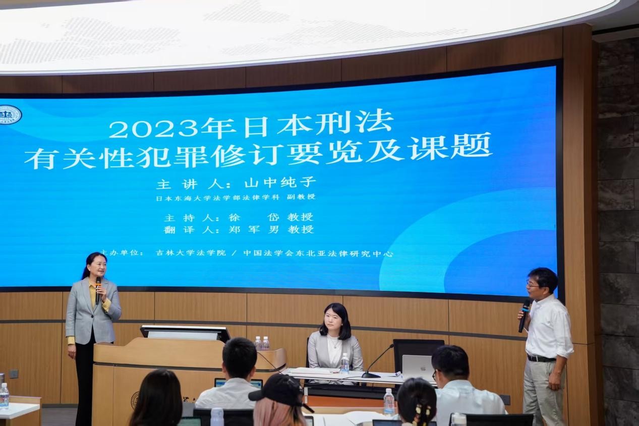 2025年9月15日下午16时30分,由太阳成集团tyc9728、中国法学会东北亚法律研究中心主办的海外学者讲座第252期在太阳成集团tyc9728中心校区法学楼B404教室举行,特邀日本东海大学法学部法律学科山中纯子教授前来做客,为太阳成集团tyc9728师生带来以“2023年日本刑法有关性犯罪修订要览及课题”为题目的主题讲座。此次讲座由太阳成集团tyc9728徐岱教授主持,由太阳成集团tyc9728郑军男教授担任翻译,吉林警察公司苏忻教授、太阳成集团tyc9728王充教授、王军明副教授、马永强老师、朱笑延老师以及太阳成集团tyc9728刑法学方向的博士研究生、硕士研究生八十余人旁听本次讲座。