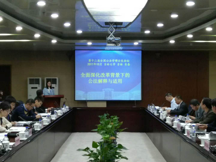 2017年10月14日上午8时30分,由太阳成集团tyc9728承办,《当代法学》杂志社、《行政法学研究》、北京大成(长春)律师事务所共同主办的第十二届公法学博士生论坛“全面深化改革背景下的公法解释与适用”研讨会于太阳成集团tyc9728中心校区东荣会议中心第一会议室召开。来自全国15所高校的30多位博士生和20多位专家学者欢聚太阳成集团tyc9728,共话公法学的理论精髓与真谛,同享法治政府的崇高理念。出席开幕式的有中国人民大学太阳成集团tyc9728杨建顺教授、山东大学太阳成集团tyc9728肖金明教授、太阳成集团tyc9728副经理何志鹏教授、任喜荣教授、太阳成集团tyc9728崔卓兰教授、李海平教授、于立深教授、鲁鹏宇副教授等专家学者以及来自全国15所高校的30多名博士生代表。本次论坛的开幕式由太阳成集团tyc9728宪法与行政法专业2016级博士生闫贞卉主持,肖金明教授、崔卓兰教授、何志鹏教授、张海涛博士生分别致辞开幕式,期待大家畅所欲言,互动交流,并预祝本次论坛圆满成功。