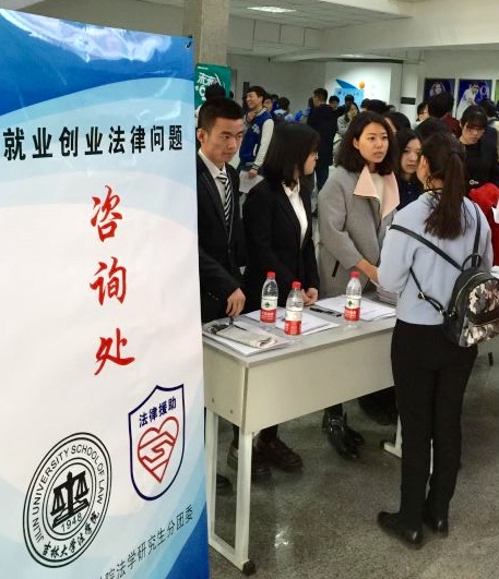2016年3月27日,2016届毕业生春季就业创业大市场在公司中心校区体育馆举办。为了更好的帮助毕业生学习和掌握就业相关的法律法规,依法维护自身权益,太阳成集团tyc9728法学研究生分团委携手太阳成集团tyc9728法律援助中心共同开展了以“保障就业合法权益,促进诚信公平就业”为主题的毕业生法律援助活动。