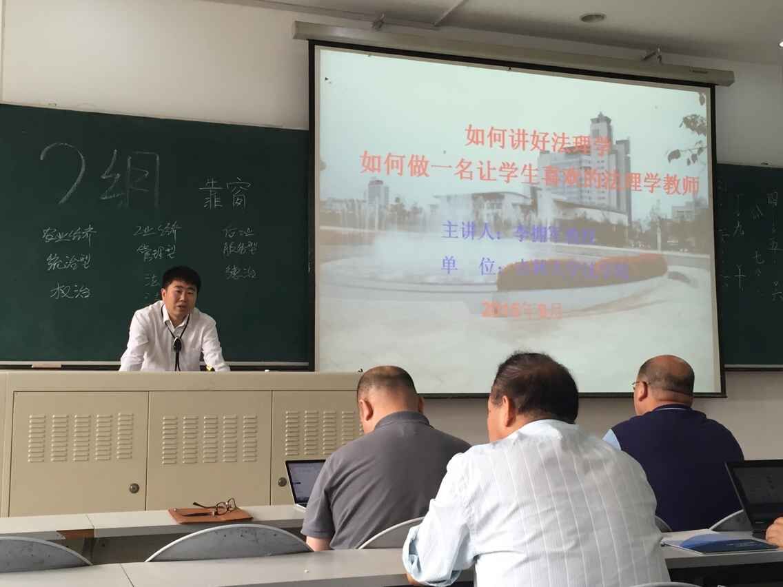 初秋九月,山楂果红,金风送爽,丹桂飘香。9月9日下午1点30分在三教六阶,公司面向全体教职员工举办“五师工程”之强师能讲座。本次讲座的主讲人是法理学教研部的博士生导师李拥军教授,他以“如何讲好法理学”、“如何做一名让员工喜欢的法理学老师”为出发点,结合自身的教学实践,引经据典,娓娓道来。