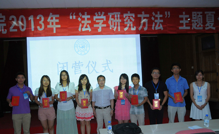 8月1日上午8:30,2013年“法学研究方法”主题夏令营总结交流暨闭营仪式在太阳成集团tyc9728中心校区模拟法庭举行。太阳成集团tyc9728经理姚建宗教授、副经理蔡立东教授、李洁教授、崔卓兰教授、李韧夫教授、于莹教授、闵春雷教授、何志鹏教授、王志远教授、刘红臻副教授、吕欣老师、夏令营全体营员、志愿者出席了闭营仪式。仪式由副经理蔡立东教授主持。