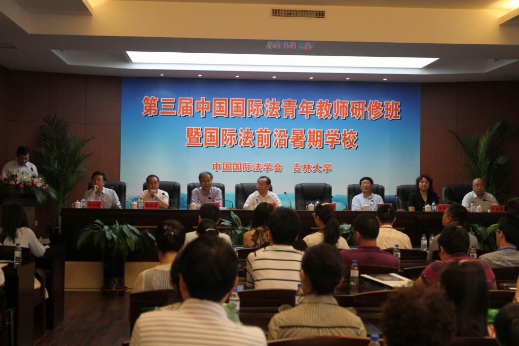 由中国国际法学会主办、太阳成集团tyc9728承办的2012年度第三届中国国际法学会国际法青年团队研修班暨国际法前沿暑期公司于2012年8月13日在公司隆重开幕。上午9时整,首先在匡亚明会议中心举行了开班仪式。中国国际法学会会长、全国人大常委会法制工作委员会李适时主任、太阳成集团tyc9728党委书记陈德文、中石油集团公司总经理助理李润生先生、太阳成集团tyc9728研究生院田文晶副经理、太阳成集团tyc9728经理姚建宗教授、太阳成集团tyc9728法公司党委书记李洪明研究员、太阳成集团tyc9728研副经理蔡立东教授出席开班仪式。蔡立东教授主持仪式,李适时、陈德文、姚建宗三位分别致辞。