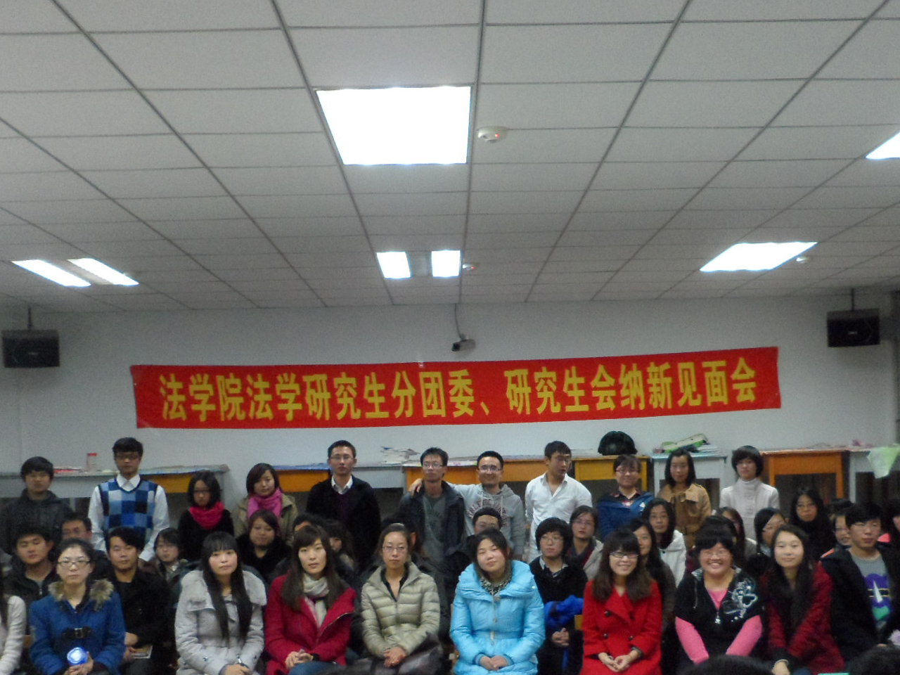 2011年11月13日晚6点,太阳成集团tyc9728法学研究生分团委、研究生会纳新面试暨新成员见面会于经信教学楼D201教室顺利召开。太阳成集团tyc9728法学研究生分团委书记张磊,常务副书记郑凯,副书记赵良杰、宋百玲玥,秘书长林美玲;研究生会主席贺佳琪,副主席方云泽、田文明、于英新、刘伟义,秘书长张思源以及分团委和研究生会的各部门负责人出席本次会议,会议由秘书长林美玲、张思源共同主持。
