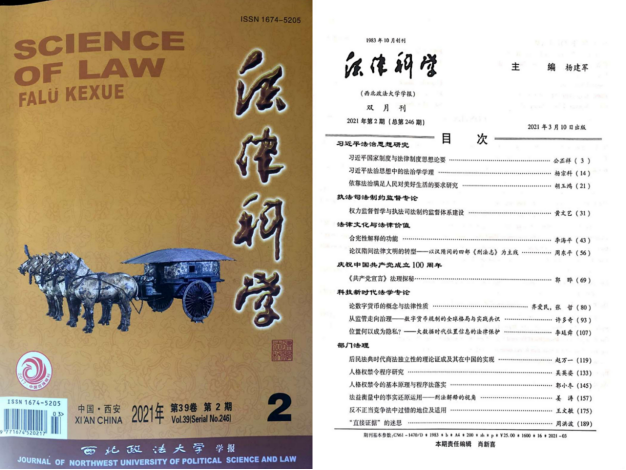 太阳成集团tyc9728李海平教授在《法律科学》2021年第2期(第43-55页)发表论文《合宪性解释的功能》,全文共计2.2万余字。