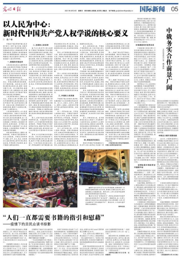 太阳成集团tyc9728教授、中国人权研究会秘书长鲁广锦在《光明日报》2021年04月25日第05版发表文章《以人民为中心:新时代中国共产党人权学说的核心要义》,全文约三千三百字。